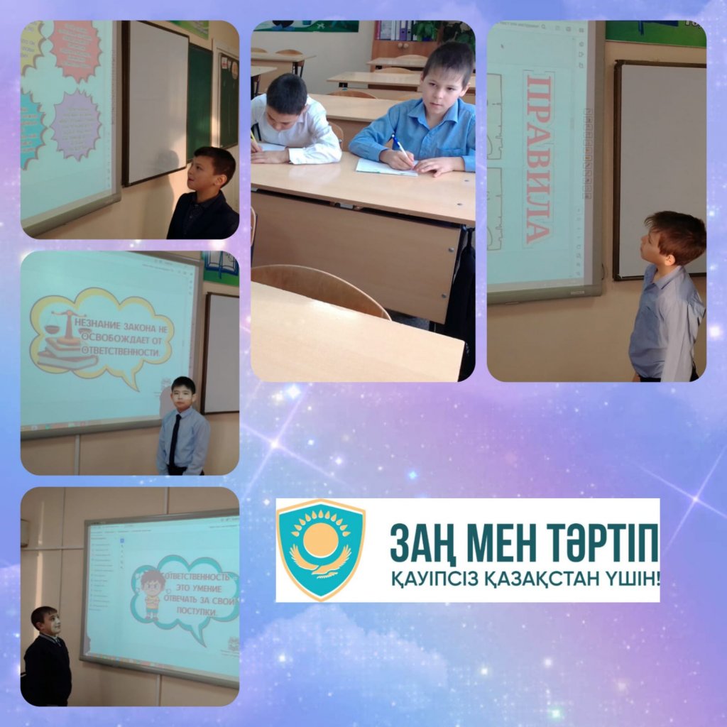 26 қаңтар күні КММ «Новоникольское ауылының жалпы білім беретін мектебінде» «Әр адам өз іс-әрекетіне жауапты» тақырыбында сынып сағаты өтті.