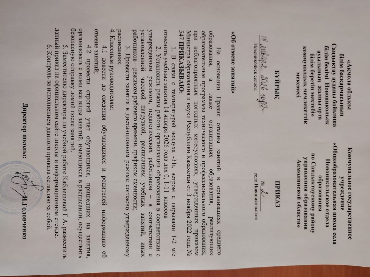 Қашықтықтан оқыту туралы №2 бұйрық 14.01.2026ж