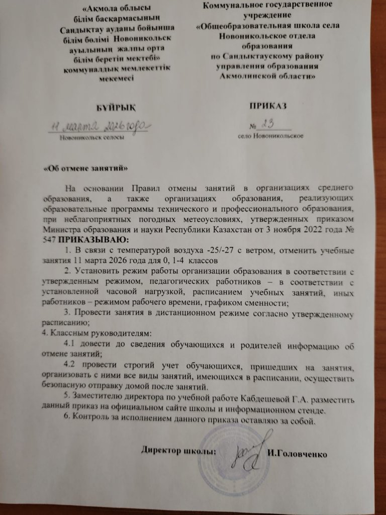 «Ақмола облысы білім басқармасының Сандықтау ауданы бойынша білім бөлімі Новоникольск ауылының жалпы орта білім беретін мектебі» коммуналдық мемлекеттік мекемесі